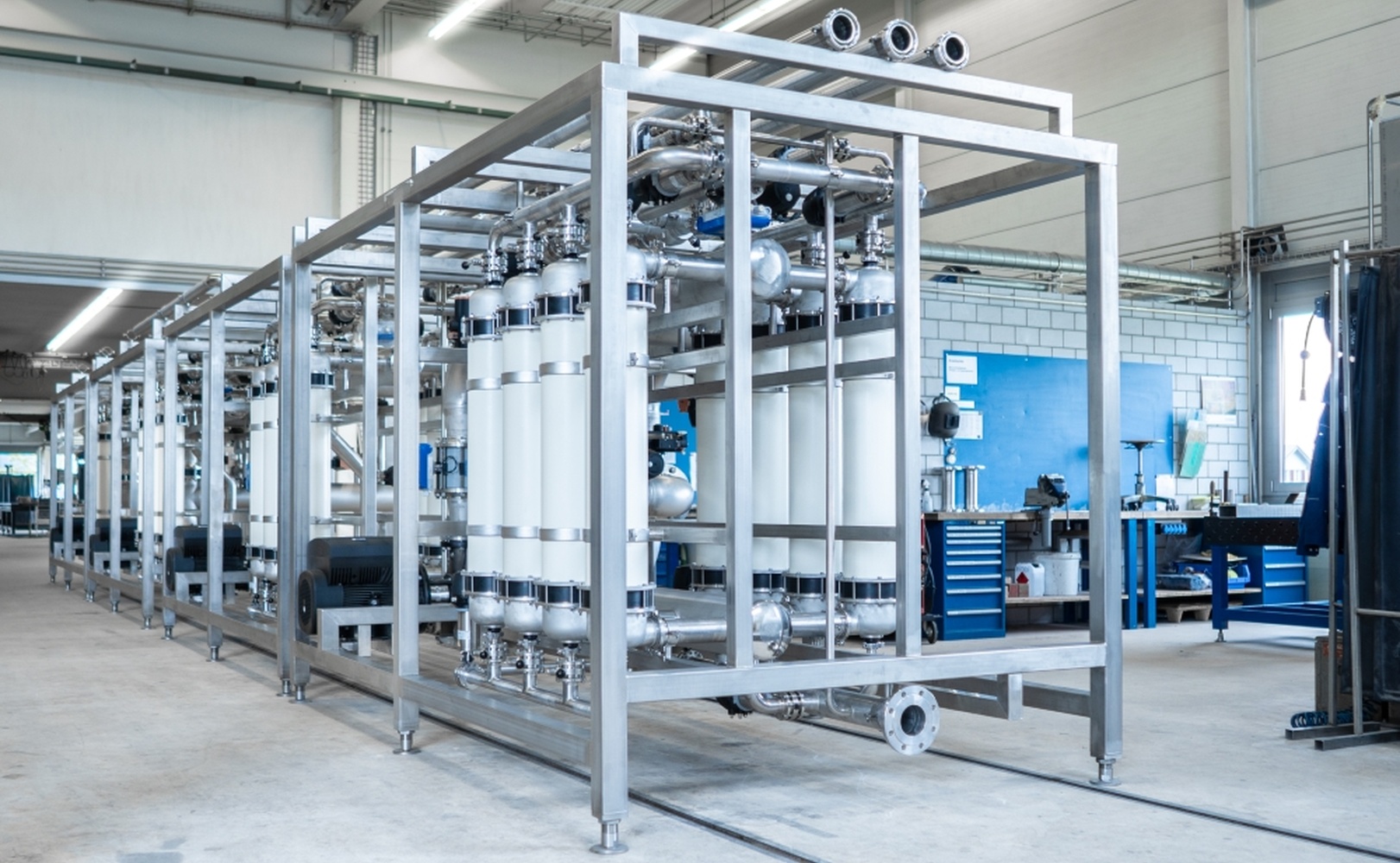 Die Anlage besteht aus zwei baugleichen Filterstufen und bildet die Vorstufe zur Nanofiltration und der anschliessenden Entwässerung, welche beide ebenfalls von uns konstruiert und realisiert wurden.