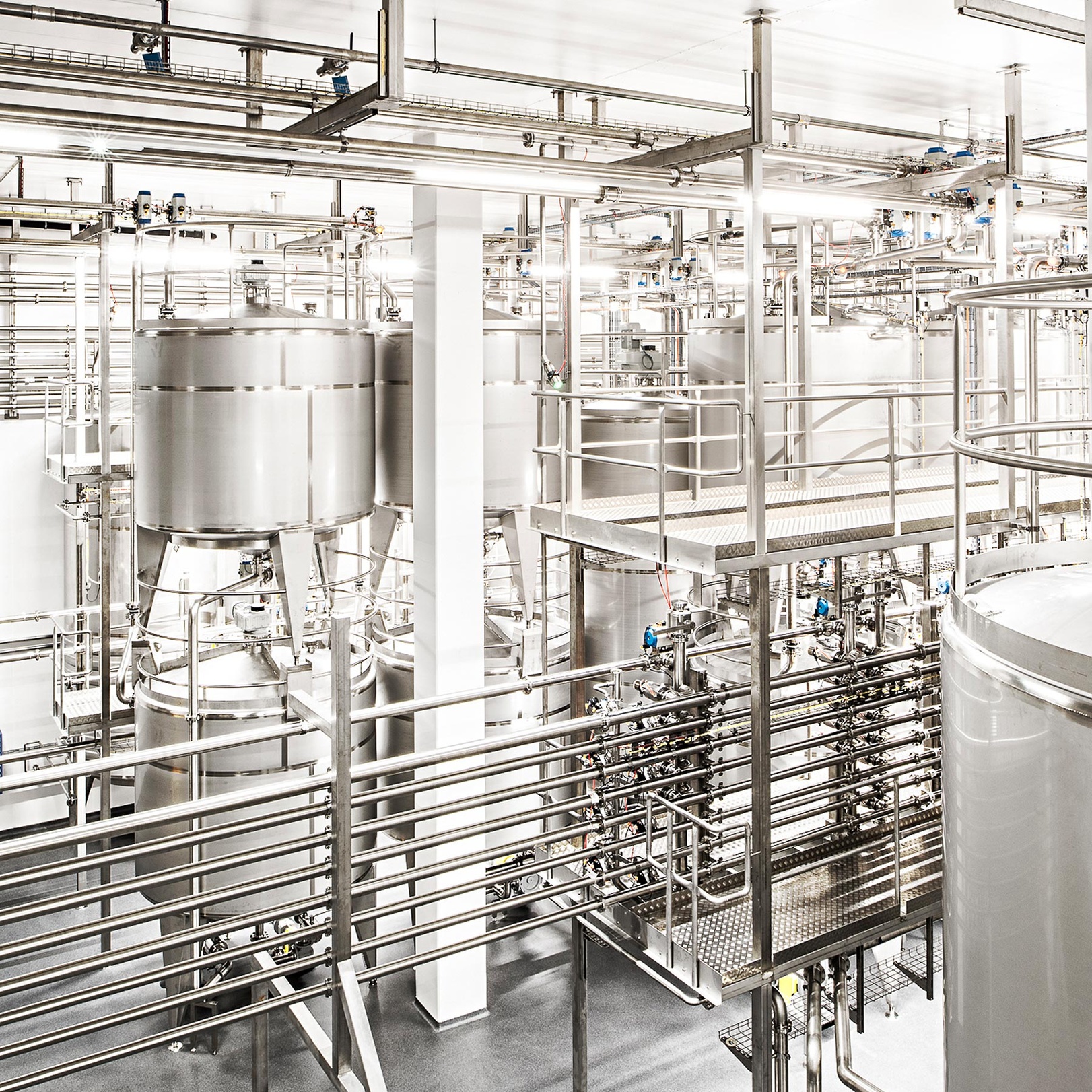 Für unsere internationalen Kunden, hauptsächlich Lebensmittel- und Getränke-Hersteller aber auch Produzenten von chemischen und pharmazeutischen Produkten, planen und bauen wir komplette Prozessanlagen.
